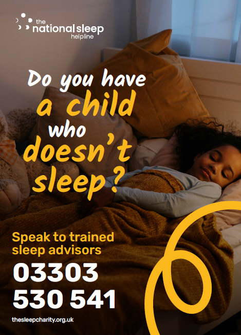 A confidential helpline that is available for parents, carers, teens and professionals. Open 9-11am Monday to Thursday and 7-9pm Monday, Tuesday and Thursday, it is run by trained specialist sleep advisors. There is a free helpline resource pack here or call 03303 530 541